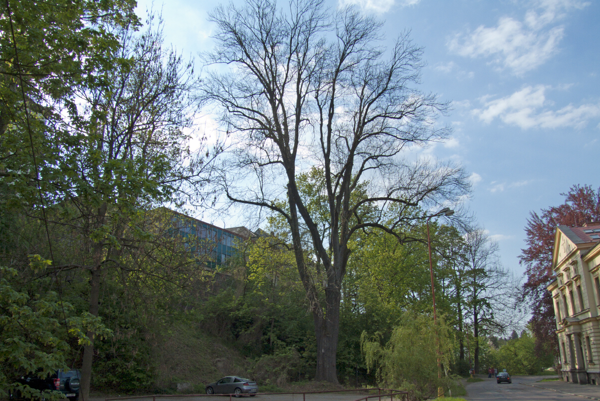Z Jablonného jsme se vydali do Žamberka. Vzácný, vysoký, ale skoro neviditelný jasan na neudržovaném parkovišti proti místní střední škole byl skryt i našim odborníkům. Jasan přestože je konec jara ještě není olistěný. On je vůbec takovým čtverákem, na podzim, když se rozhodne, tak za jediný den shodí celou svoji parádu.