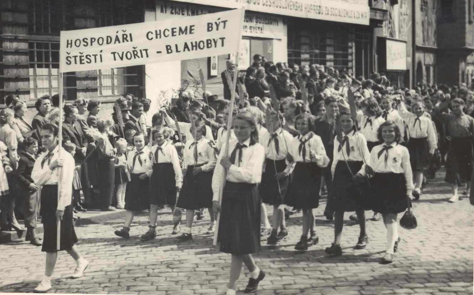 Můj táta nikdy do prvomájového průvodu nechodil, ale když šla jeho fabrika naší ulicí na náměstí, kde byly za chvíli na tribuně projevy funkcionářů, čekal za záclonou, až půjde pod okny jeho parta, pak se vyklonil z okna a domlouval se s chlapy, ve které hospodě se po projevech sejdou.