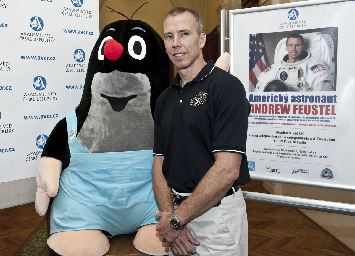V rámci přednáškového turné po Česku přijede Feustel také se svou chotí Indírou, která má české kořeny a podle všeho inspirovala odborníky z NASA k vyslání Krtečka do kosmu.