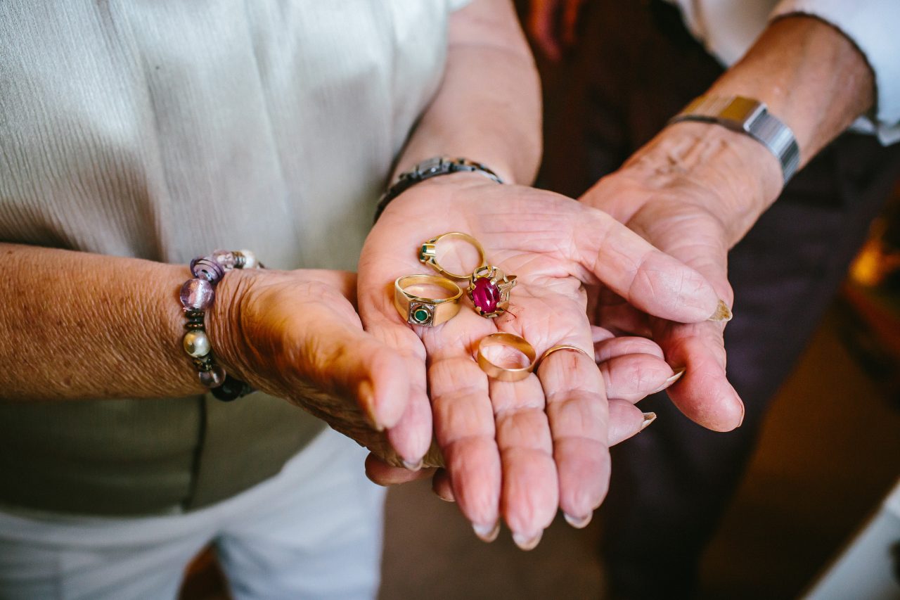 Karel vybral prstýnky v Prostějově, když tam byl na služební cestě. „Coural jsem po městě a najednou koukám, že tam jsou veřejný závěrečný zkoušky zlatníků. Tenkrát jste si nemohli koupit prstýnek, jaký jste chtěli. A najednou tady bylo plato, kde jich bylo asi deset. Tak jsem je koupil a dodnes drží, i když s ním dělám všechno.“