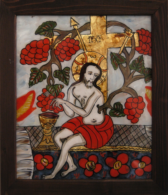Dále jsou tady vystaveny tři ikony na pergamenu z telecí kůže, pak je to malba na mramoru, grafika s náboženskou tematikou - opět se zlatými plátky. Máme tu zastoupeny i specificky byzantské techniky, jako je například mozaika, od které se dosud neustoupilo a je čím dál více vyhledávaná. U mozaiky se jedná o malbu nazývanou "nestárnoucí bezvěká malba", protože barvy kamínků nikdy neztrácejí svůj lesk. Máme i techniku sgrafita, která je opět typická pro byzantské prostředí. A pak tu máme techniku specificky rumunskou, i když se s ní můžeme setkat i jinde, o to jsou ikony malované na skle.