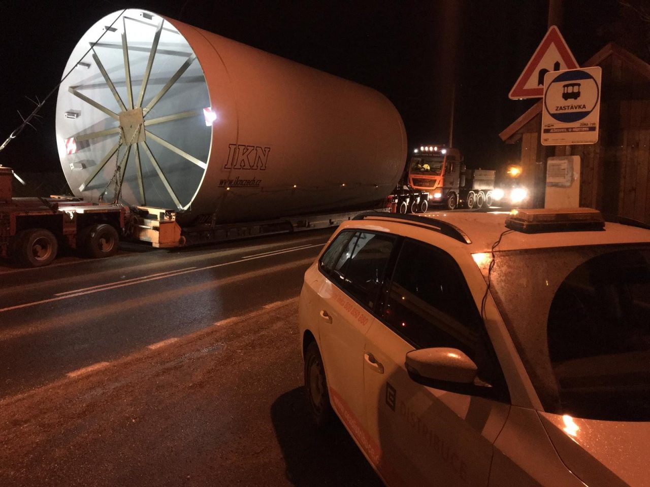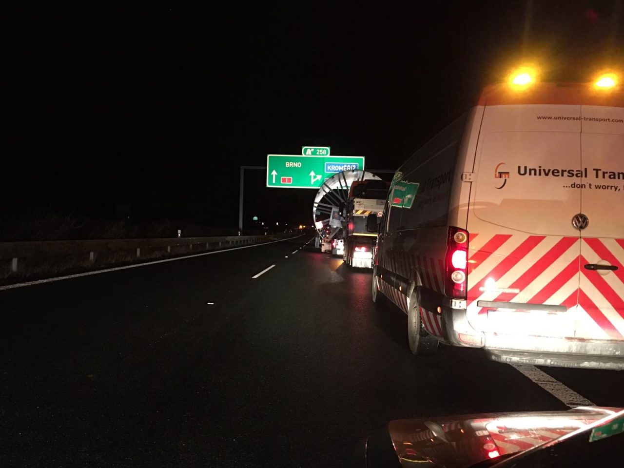 Náklad vyjel ve čtvrtek nad ránem a dojel z Přerova do Černé Hory, kde přenocoval. Dnes vyrazí kolem půl deváté z Černé Hory a na místo určení (do cementárny v Prachovicích) dorazí po 122 km kolem 18. hodiny.