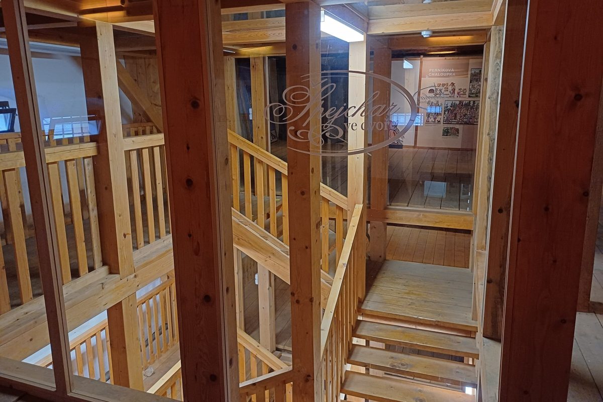 Při procházení výstavy půjdete tak trochu z kopce, což je zvláštností historické budovy. „Naši předkové důvtipně využili svažitý terén. V průčelní stěně jsou dva větrací otvory, ke kterým bývala sespádovaná podlaha. Domníváme se, že to bylo kvůli vodě, kdyby sem zateklo,“ vysvětluje Ivana Paseková.