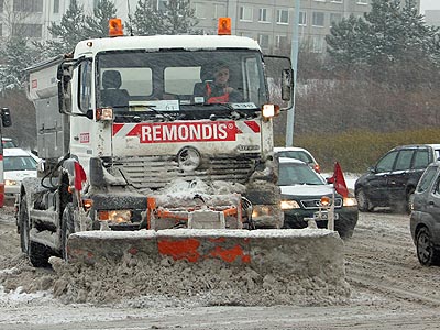 Silnice pokryl sníh, pluhy jsou v terénu