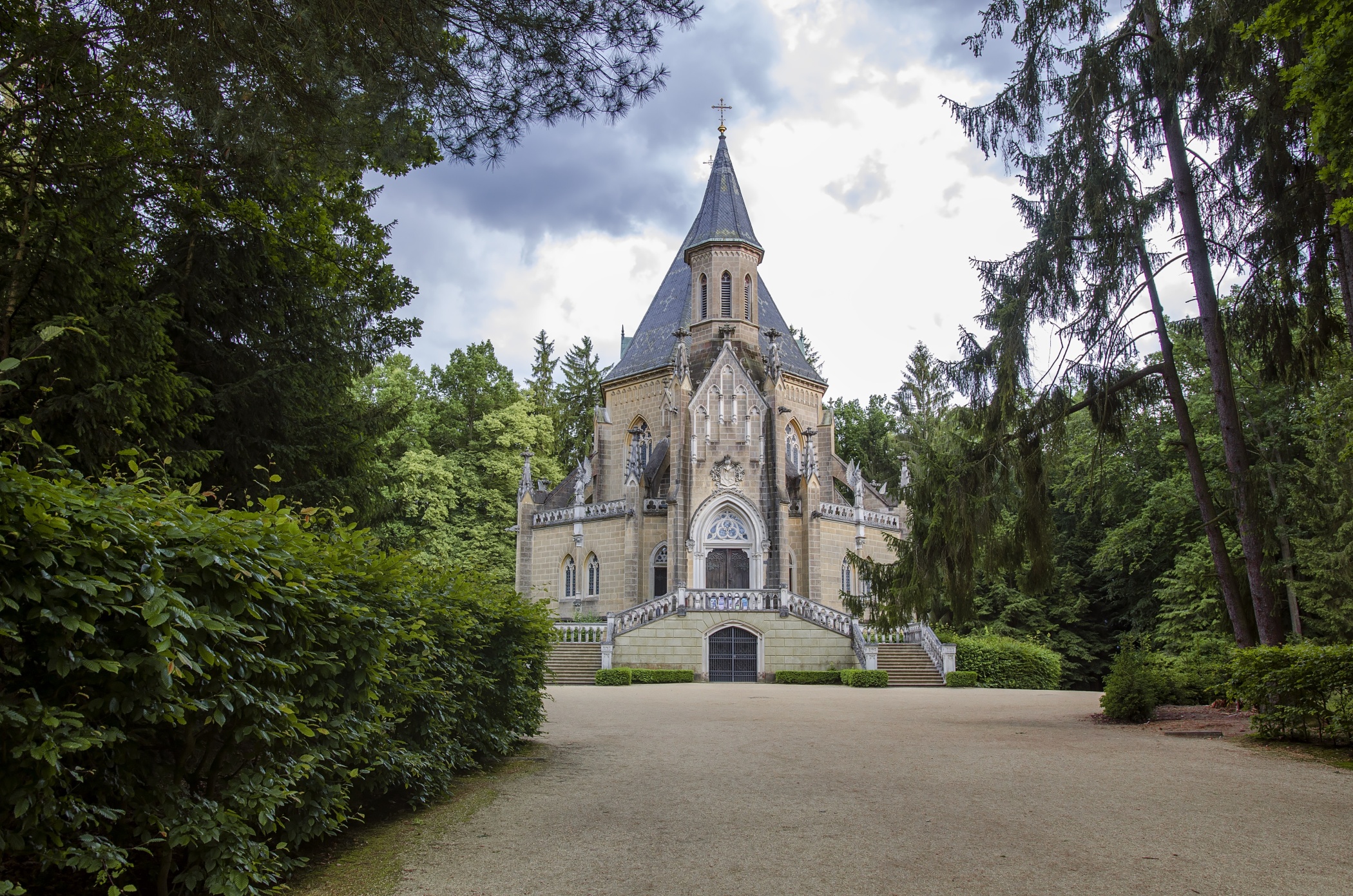V anglickém parku při jihovýchodní straně rybníka Svět nedaleko Třeboně dal Jan Adolf II. Schwarzenberg se svou manželkou kněžnou Eleonorou vystavět velkolepou dvoupodlažní rodovou hrobku v novogotickém slohu.