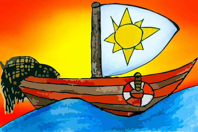 Rudovi s Michalem se velice, velice uleví. Vedle loďky to hlasitě vyšplouchne. Ale není to kámen, co jim spadl ze srdce…