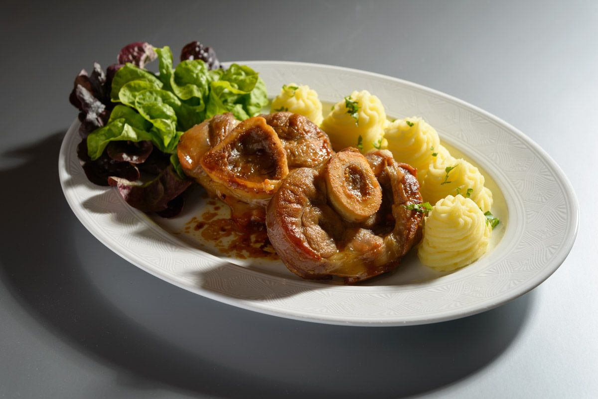 Osso buco znamená v italštině „kost s dírou“. Jde vlastně o přeseknutou morkovou kost uprostřed plátku telecí kližky. Právě v Itálii tento název, na kusy přespříč nasekané telecí kolínko, získal. Tím, že maso z tohoto kusu obsahuje velké množství kližky, je velmi křehké, měkké a velice chutné. Morková kost dodává tomuto pokrmu nenahraditelnou chuť, obzvlášť ve spojení s máslem, jak je tomu v tomto receptu.