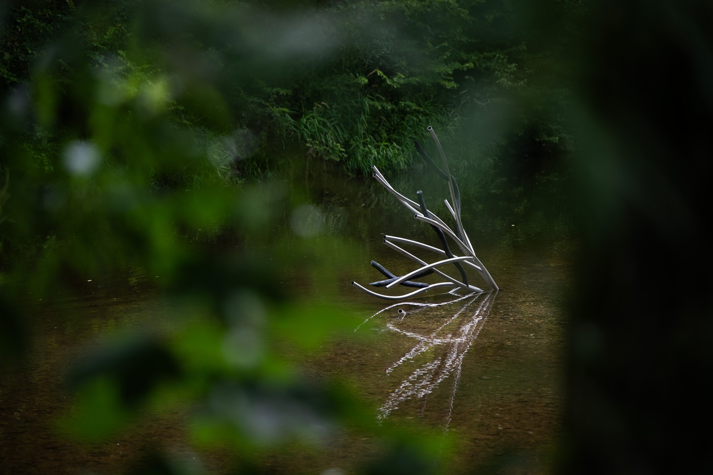 Dílo připomíná polámané větvě a občas na něm odpočívají ptáci, například ledňáčci. „Od začátku jsem se chtěla zabývat vodou. Skrze zkoumání krajiny kolem Chrudimky vznikl návrh díla. Vybrala jsem si Chrudimku, protože je klidnější, je mělčí než Labe, nejsou na ní lodě. Je to tady nádherné místo,“ řekla Milgromová.