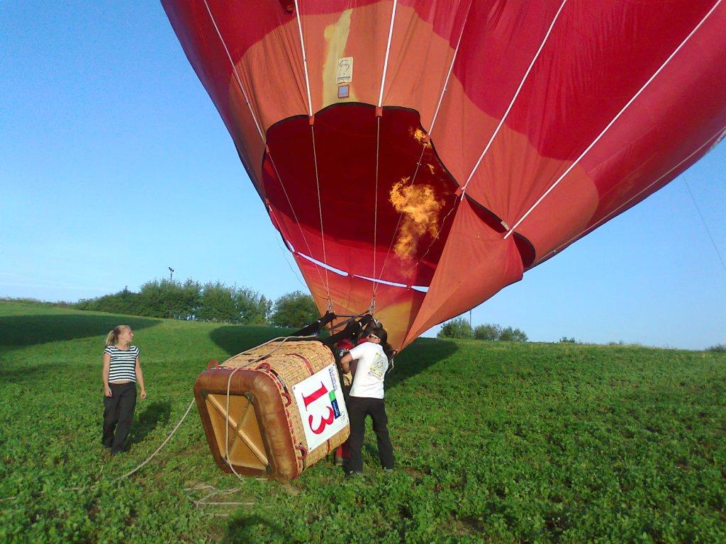 Každý balón má svůj vlastní plynový hořák, do kterého musíte dávat plyn stejně, jako když tankují rodiče benzín do auta. Právě díky plynovému hořáku zažehne pilot balónu plamen, který ohřívá vzduch v balónu. Je to vlastně takový typický hukot, který slyšíte, když nad vámi balón letí, to je hučení toho plamene. Teplý vzduch stoupá vždy k vzhůru k nebi. Jak se opírá do kopule balónu, tak balón stoupá také.