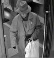 Jde o muže ve věku 40 až 50 let, štíhlé postavy. Na sobě měl béžový kabát, takzvaný baloňák, a na hlavě béžový klobouk se širokou střechou. Byl oholen a na očích měl dioptrické brýle. Hovořil česky bez přízvuku a působil vyrovnaným dojmem. Pachatel přepadl pobočku na Sladkovského náměstí v Praze 3 krátce po poledni. Přistoupil k přepážce číslo 4 a pracovnici podal papír formátu A4 s textem psaným na počítači. Stálo v něm, že jde o přepadení, že má zbraň, požaduje vydání peněz v bankovkách a že je v pobočce uložena bomba.
