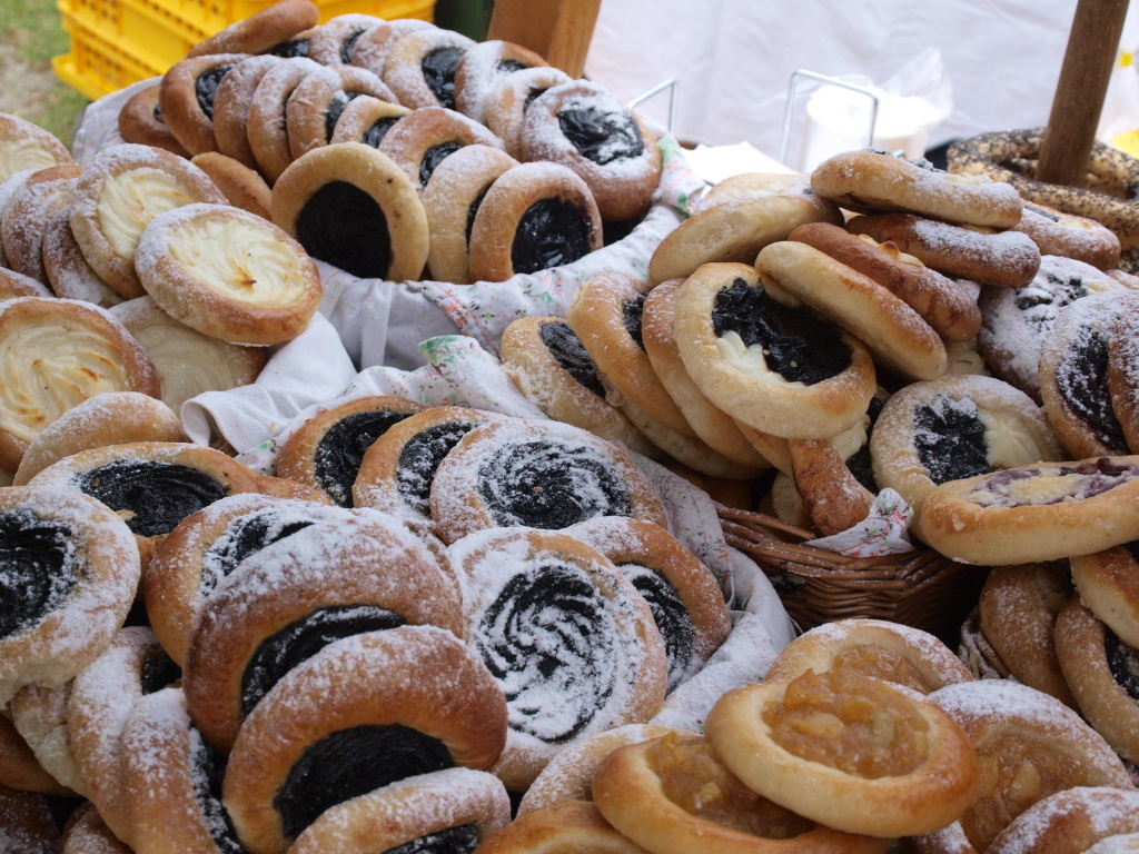 Z kostek cukru, droždí a mléka uděláme kvásek. Ke vzešlému kvásku přidáme mouku, olej, vajíčko, žloutky a trochu soli. Pořádně těsto propracujeme a necháme dvakrát vykynout (po půl hodině kynutí těsto znovu propracujeme a dáme opět kynout). Potom si uděláme velké koláče (4 – 5 koláčů z těsta). Dovnitř dáme tvaroh, mák, povidla. Navrch můžeme dát trochu drobenky.