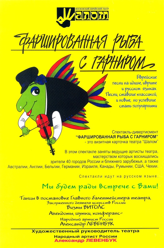 Po tři večery bude v Praze hostovat profesionální moskevské Židovské divadlo Šalom, které zde představí inscenaci Nadívaná ryba. Vystoupení se uskuteční od úterý 22. do čtvrtka 24. května vždy od 19 hodin v Divadle Radka Brzobohatého.